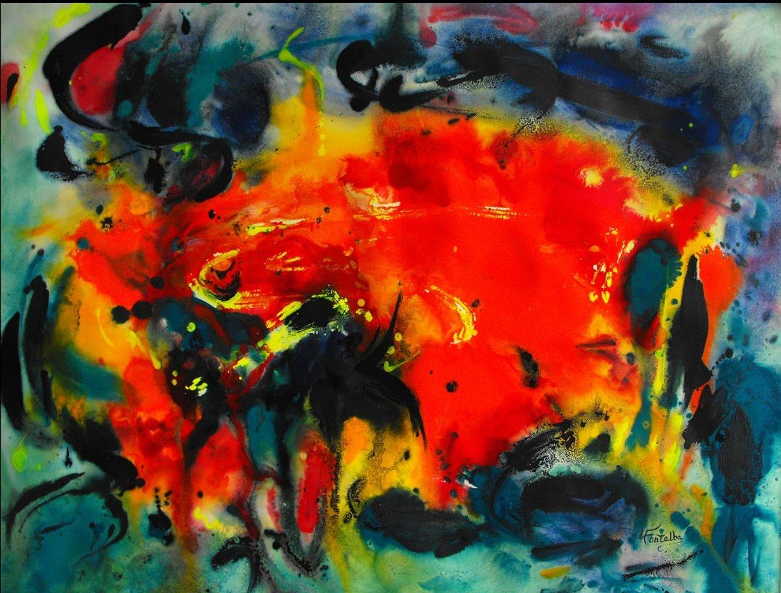 Luisa Fontalba lavora nel momento in cui il soggetto, la pittrice, e l’oggetto, l’universo, si incontrano e coglie il momento della creazione, quello in cui le cose sono in divenire perché non ancora divise, che è anche il momento a cui attinge la creazione personale, artistica, oserei dire privata.