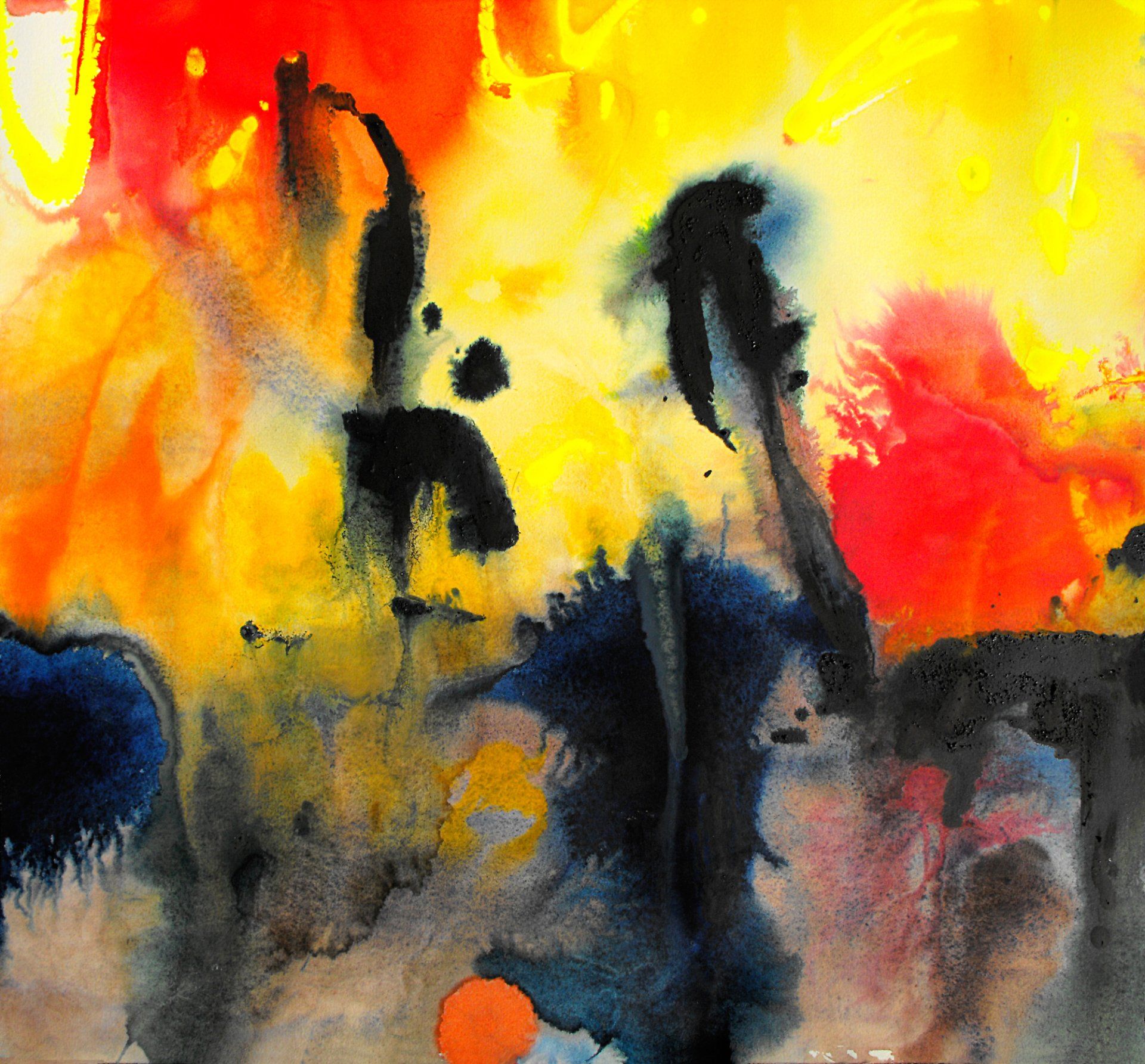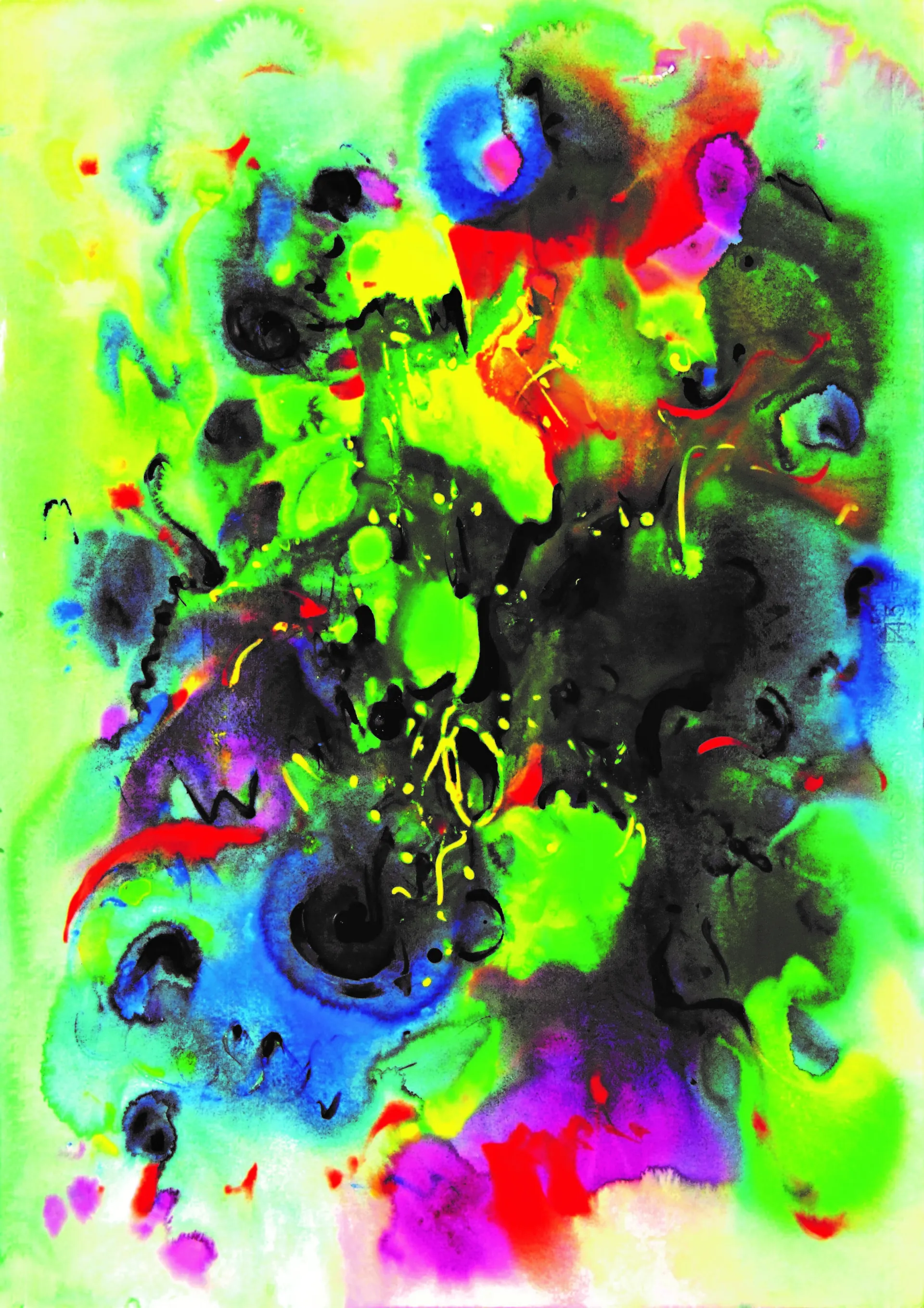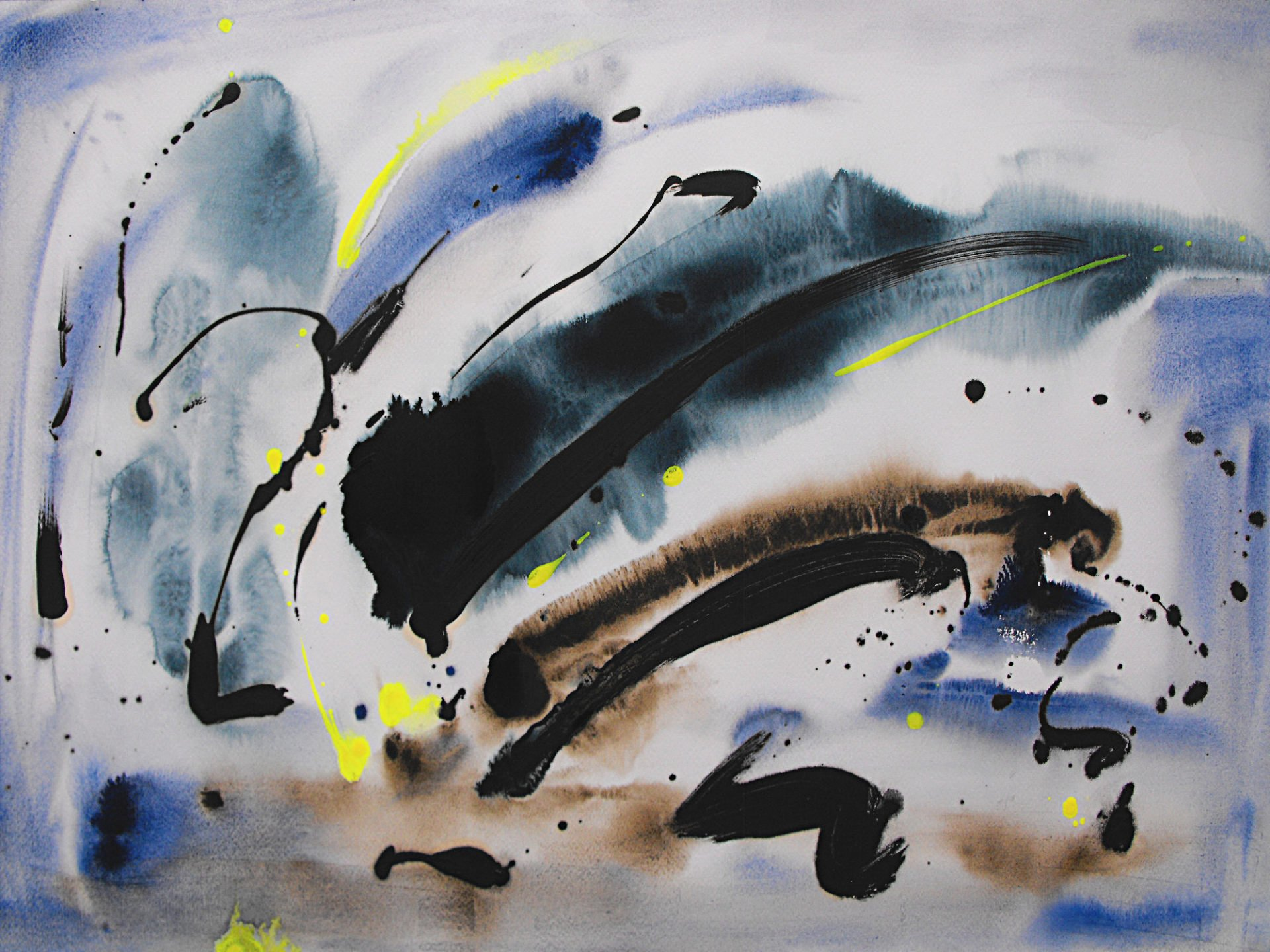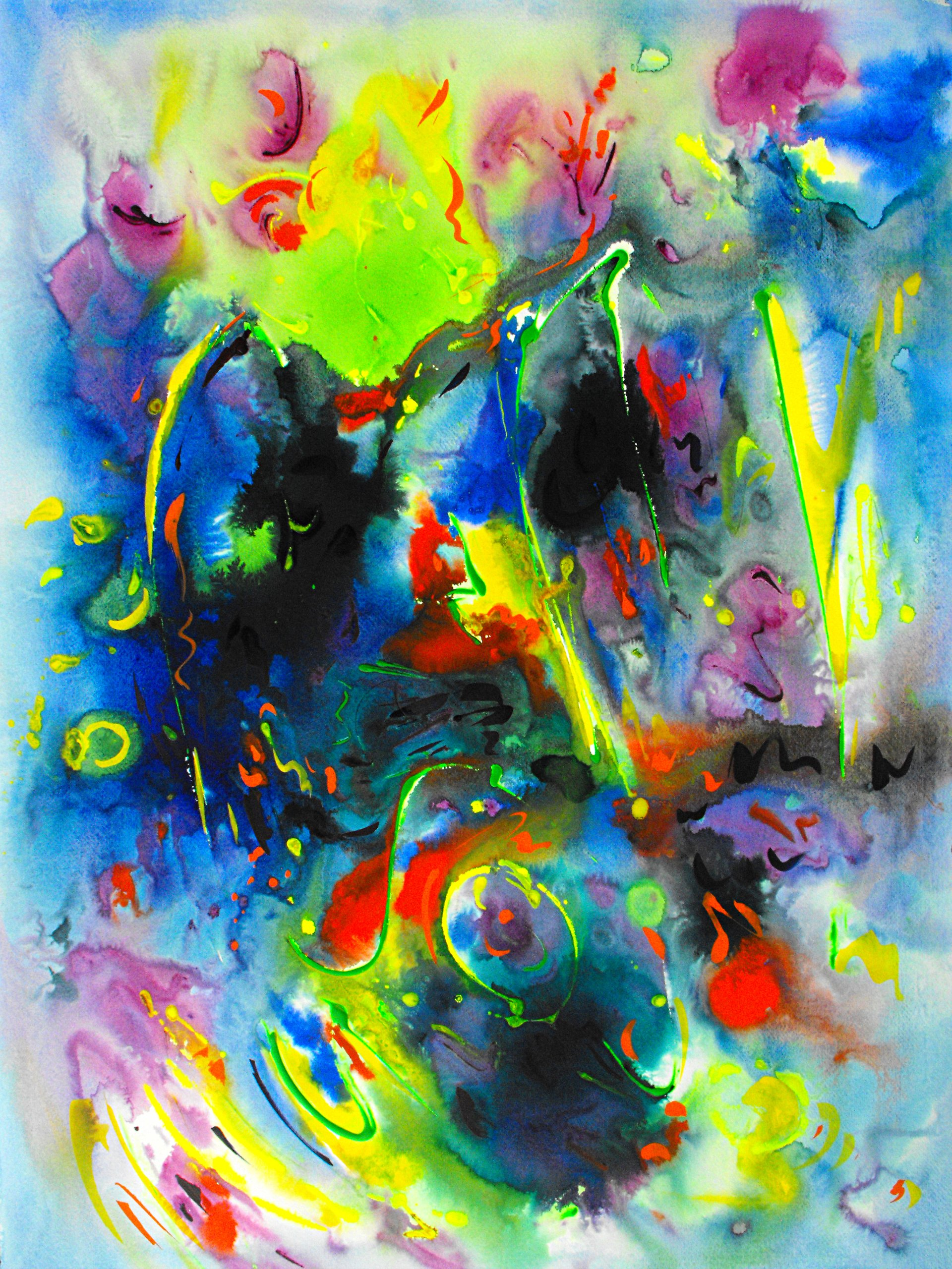 può essere considerata un autoritratto astratto. Il fondo bianco ospita pennellate casuali e amorfe che prediligono i toni del giallo, blu e celeste. La vivacità di tale composizione collima con la personalità dell’artista i richiama i colori del paese nativo, la Spagna.