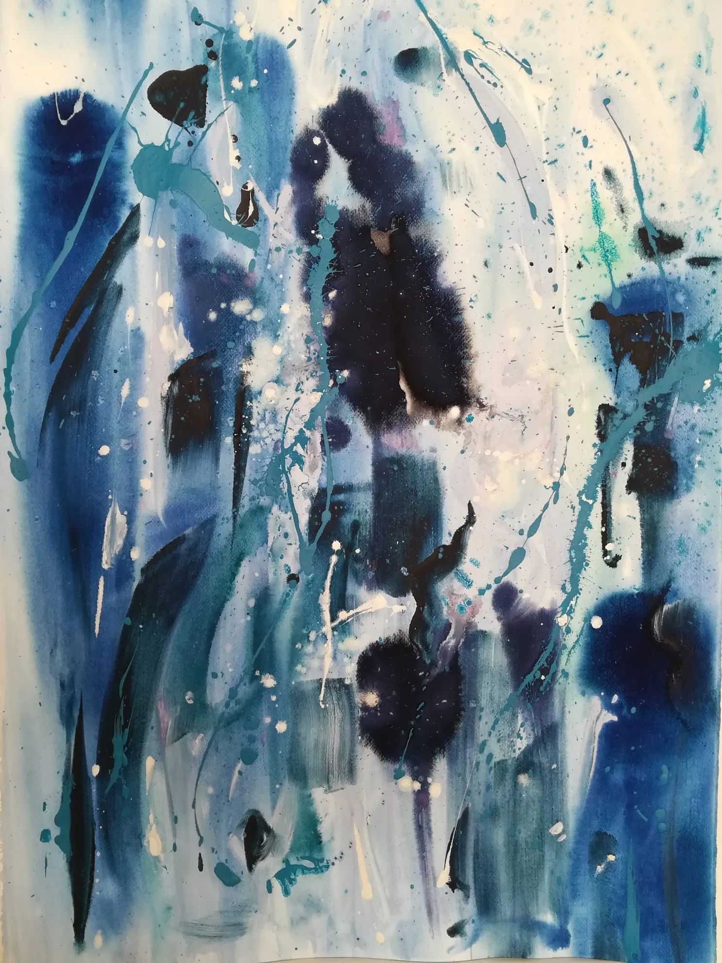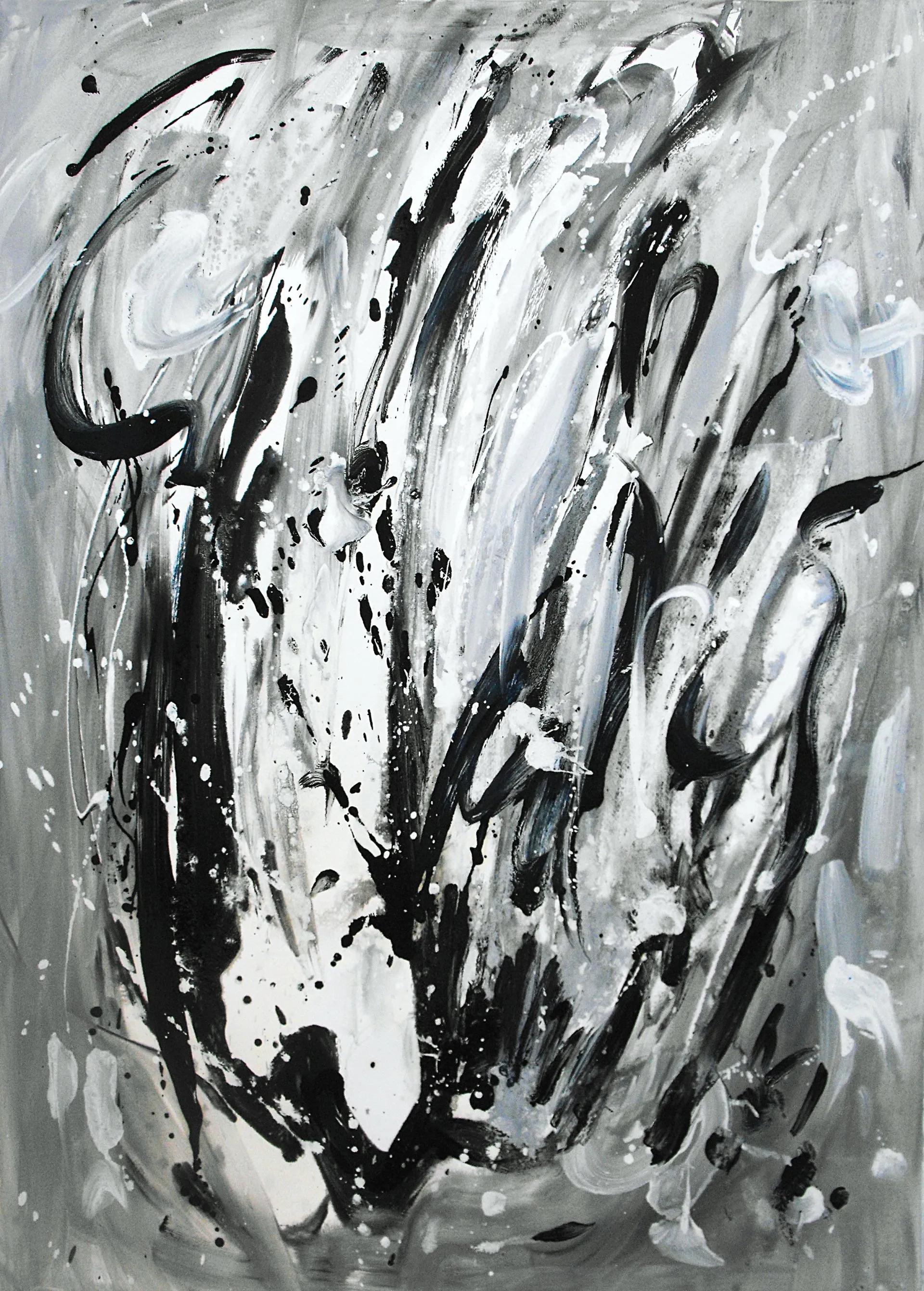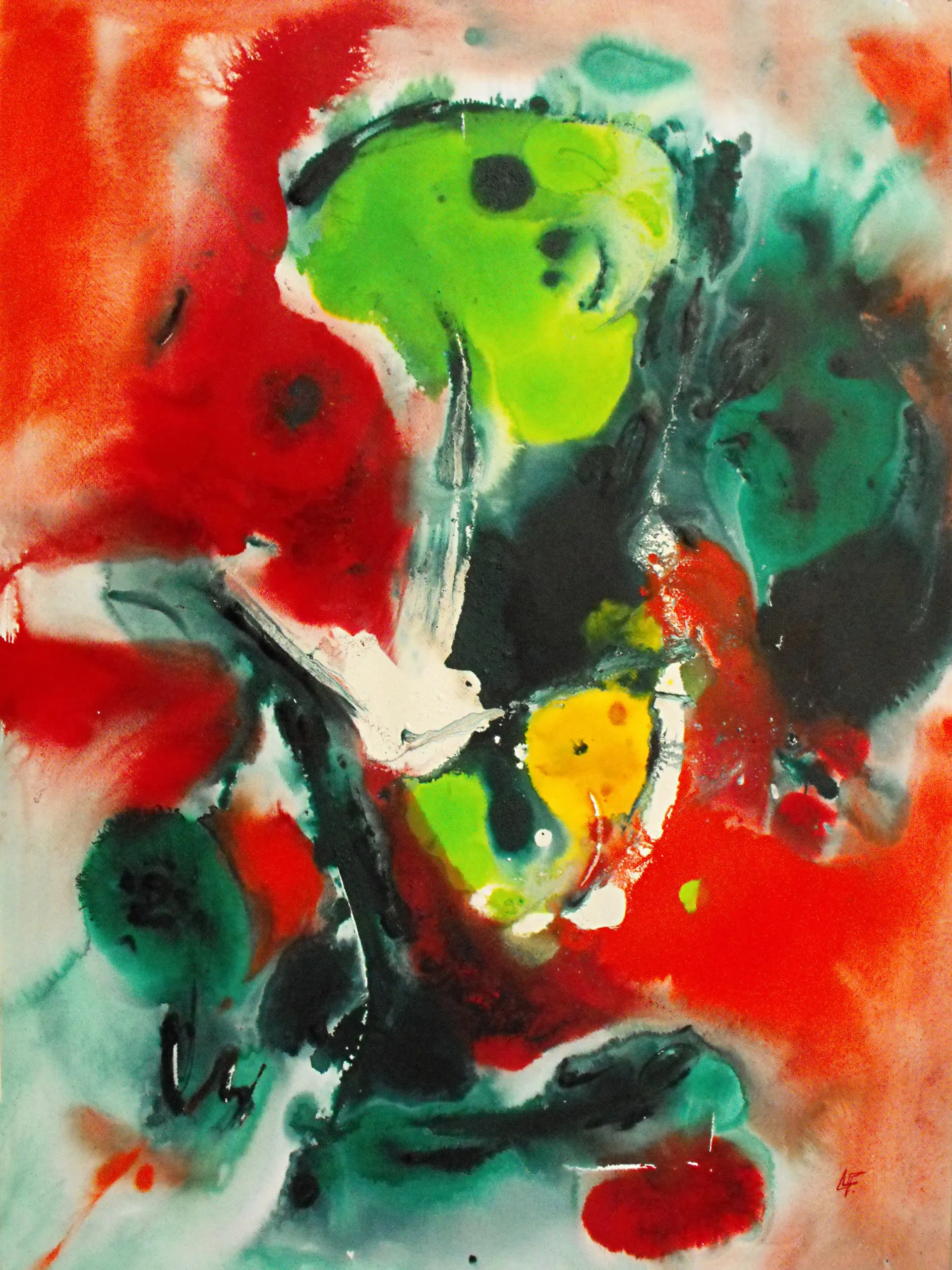 L’istintività del gesto pittorico traduce una necessità di scardinamento delle tradizionali tecniche di rappresentazione, e una volontà di esprimere il proprio io creativo, emerso da un processo di auto-analisi. “Luce bianca, Anima”