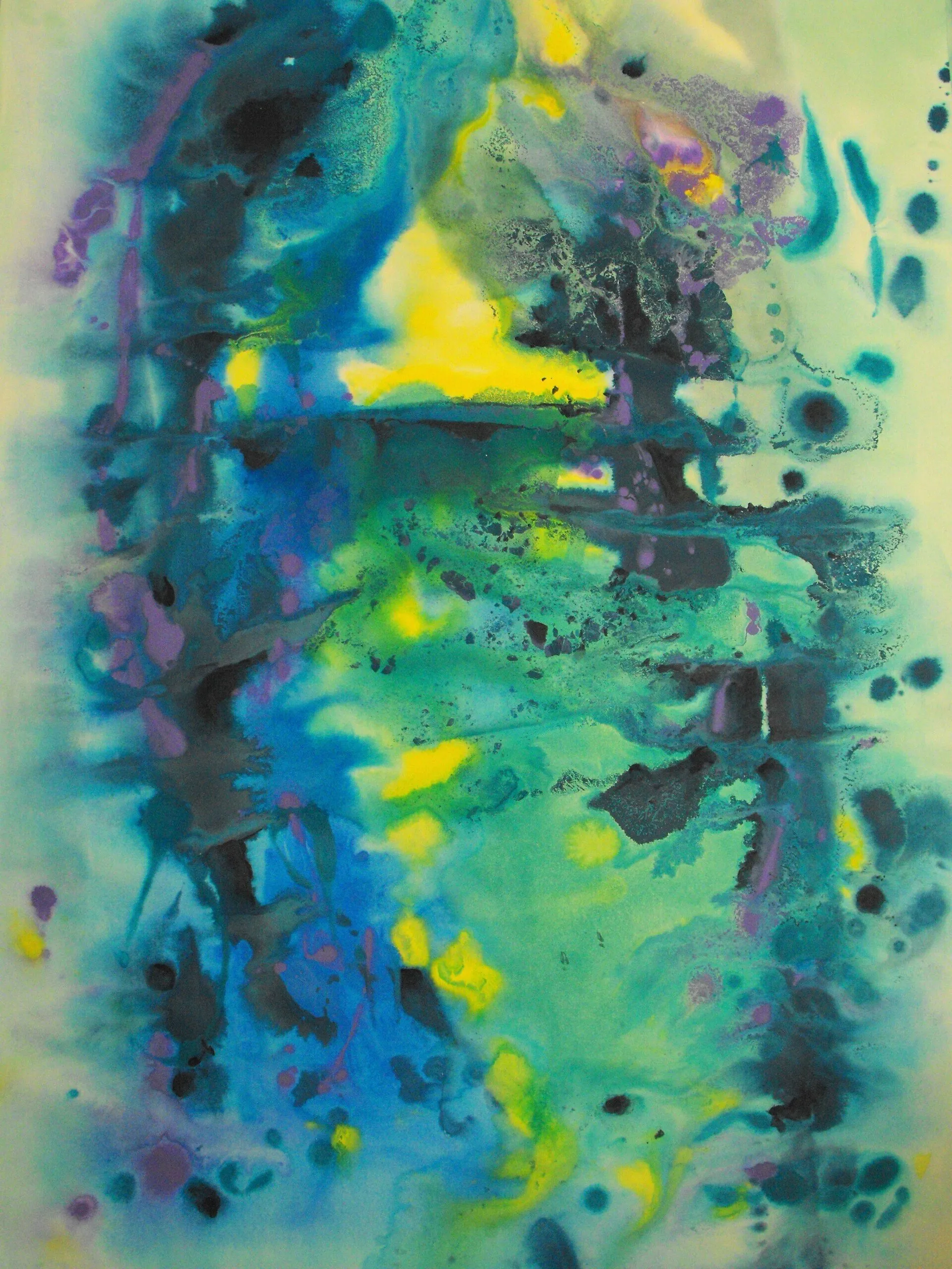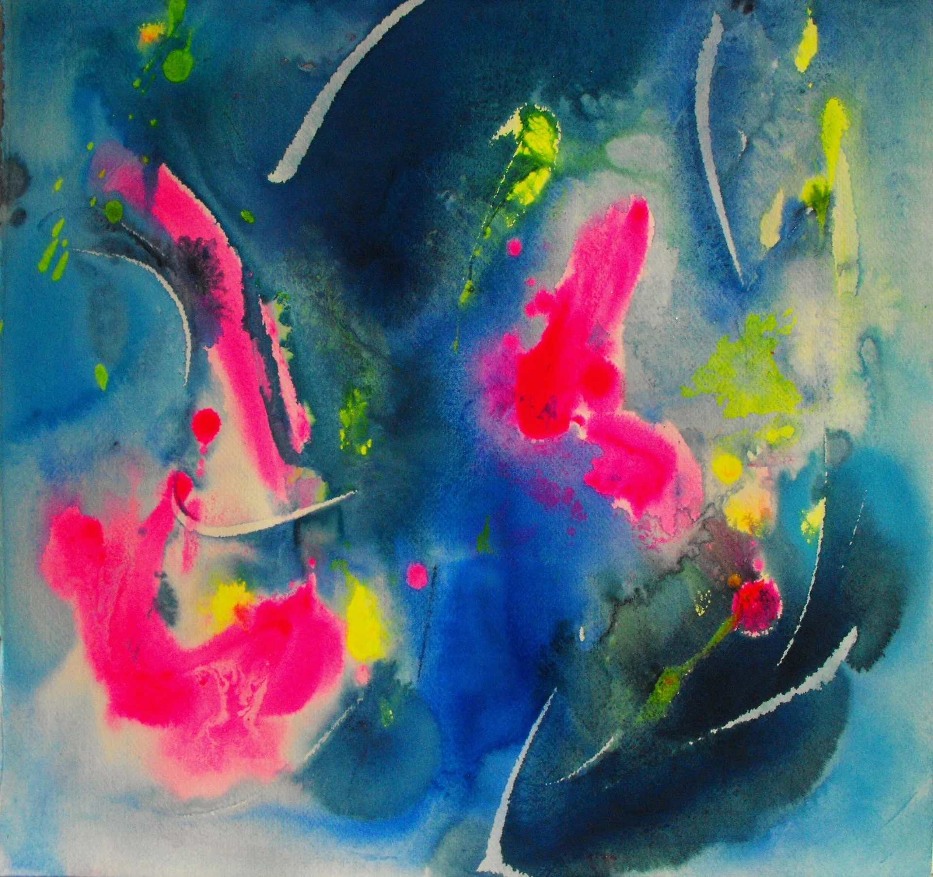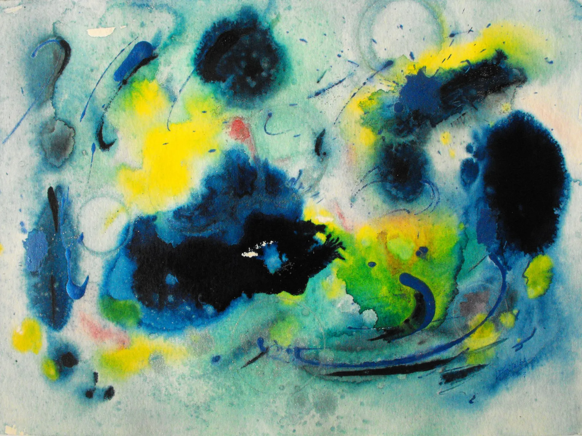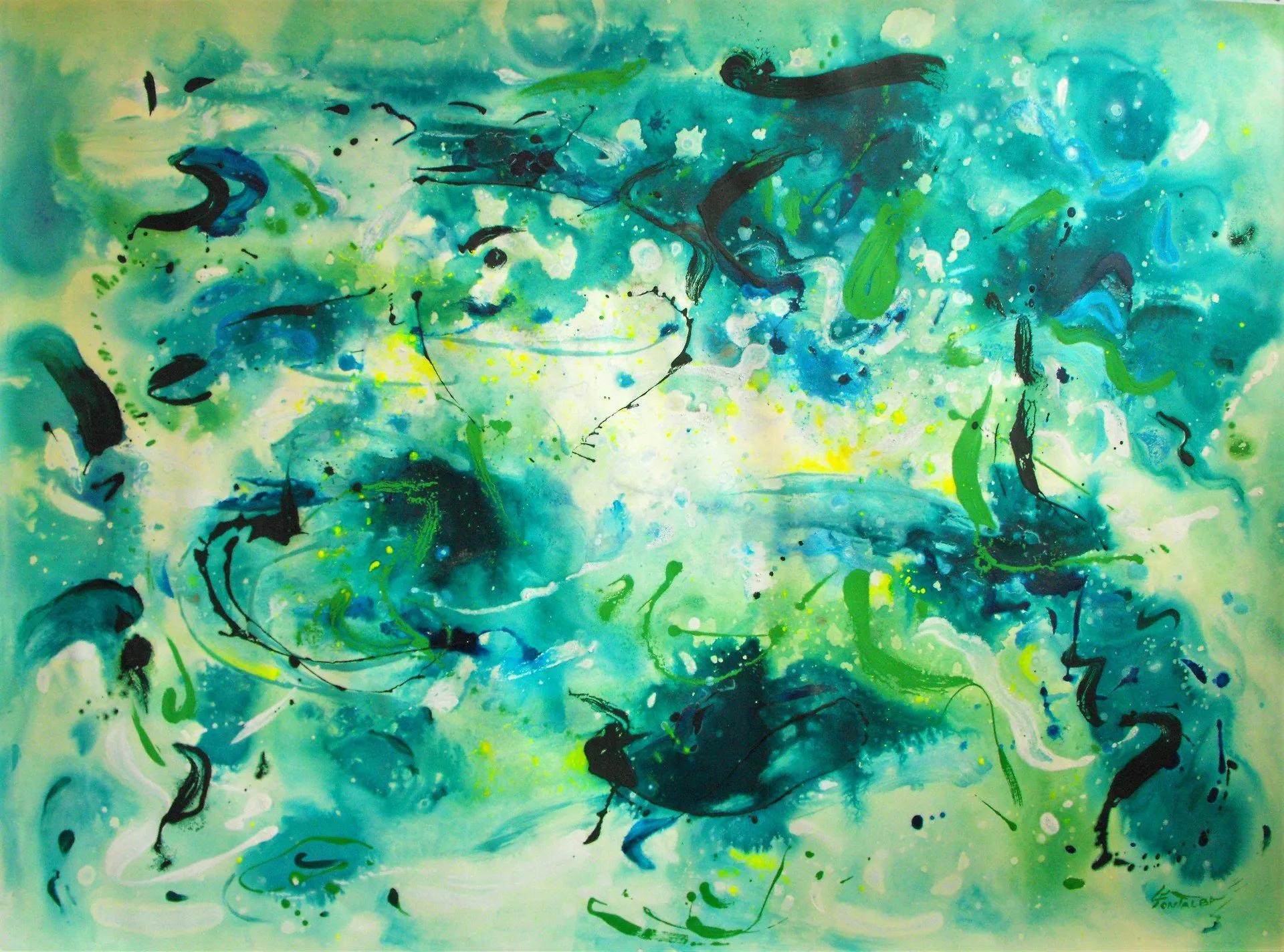 “Colore dell’ Anima” appare come la rappresentazione di uno spazio siderale, cosmico, in cui macchie di colore rosa si alternano a superfici bluastre puntellate di piccole circonferenze bianche, simili ai residui di galassie che fluttuano nell’universo. Il giallo è anche qui presente e crea una circonferenza simile a quella solare. Se nell’opera precedente vi è rappresentata l’anima nella sua interezza e nella sua inconsistente forma astratta, qui vi è invece una raffigurazione delle sfumature emotive e sensoriali che la contraddistinguono. Alla luce di ciò, l’arte di Luisa Fontalba può essere considerata un’ indagine spettroscopica del proprio mondo interiore, arricchita da un linguaggio fortemente espressivo, volto alla stimolazione estetica e sensoriale.